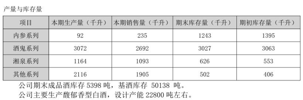 2025年,酒鬼酒内参系列产量为92千升,销售量为235千升,即便控制产量,该系列期末库存量依旧高达1243千升,去库存压力较大。