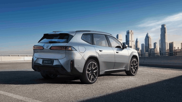 整体车侧保留经典的 BMW X 的硬朗运动比例,经过创新升级的霍夫迈斯特弯角加入丝网印刷工艺的超薄氧化钛条纹,形成「外看反光,内看透明」的效果,进化成了「镜光弯角」。尾部的天羽尾灯具备无限渐变的视觉深度,呼应车头灯速度感的设计。