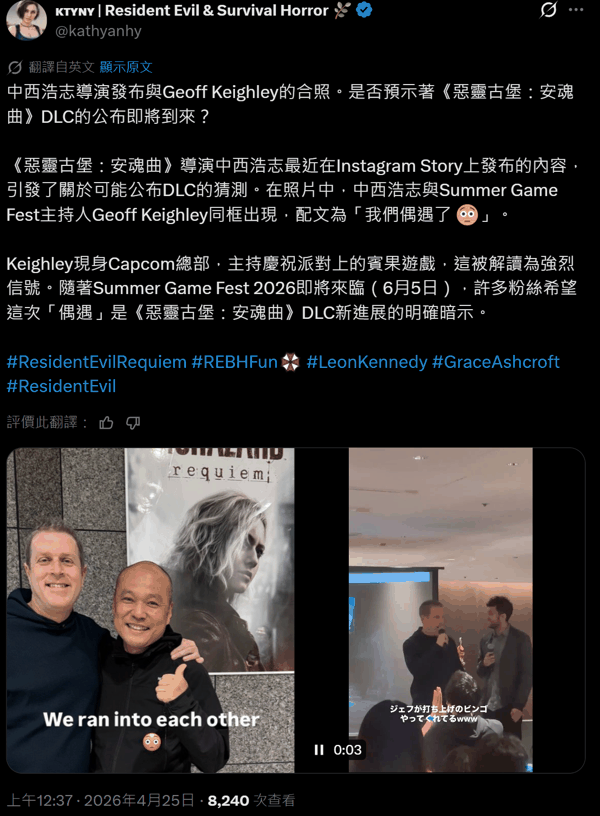 卡普空举办庆功宴:庆祝《生化危机:安魂曲》销量突破700万,TGA创办人杰夫·基思利也来了|卡普空|生化危机:安魂曲
