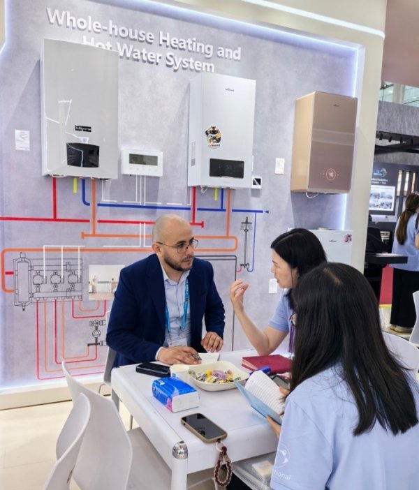 在采暖领域,万和国产全预混大功率机型及CE认证整机标准的全预混机型VB一起上阵,其冷凝状态下热效率达108%;同时还展示了最新中央控制器联动多采暖炉并联系统以及室内温控器功能。