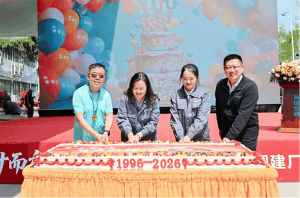 4月15日,海信空调“三十而立,智启新程”30周年庆典在海信家电产业园举行。庆典现场,企业为入职满30年的功勋员工举行授牌仪式,并组织退休职工参观厂区,共同回顾企业发展历程,平度市委副书记、市长宋振祥,海信集团副总裁、空气事业部总裁殷必彤等嘉宾出席并致辞。同期举行的30周年主题春季越野赛与集体庆生活动,则以奔跑致敬奋斗,以欢聚凝聚温情,为庆典注入蓬勃向上的团队活力。
