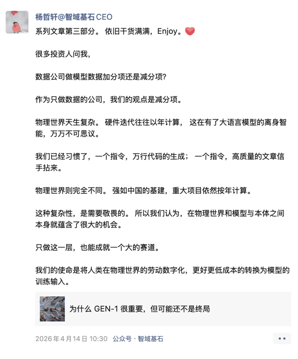 这个事听起来好像顺理成章,但其实特别麻烦。要协调各方资源,进入封闭场景,同时还得跟模型、本体公司对齐需求,大家在一块儿把事跑通。这里面 涉及数据的入口权和加工权 ,不是谁都能拿得过来,也不是谁都能把整件事情拉起来。这也能看出智域基石这家公司在技术之外的含金量。