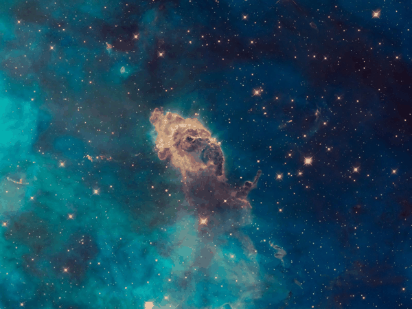 画面左侧另一道尖刺并不是普通气体柱,而是原恒星喷流 HH 399。它由正在形成的恒星驱动,长度达到数光年。
