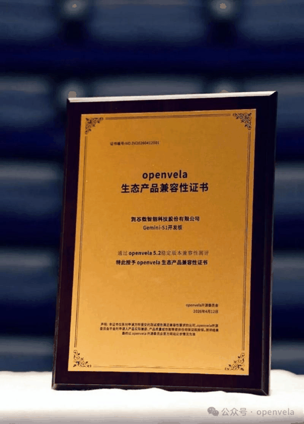 openvela生态迎来重要里程碑润芯微Gemini-S 1成首款通过官方兼容性认证的开发板