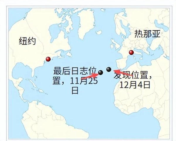 船只是被“德·格瑞第亚号”发现的,发现时它的位置距离它最后日志记录的位置足足有400海里。