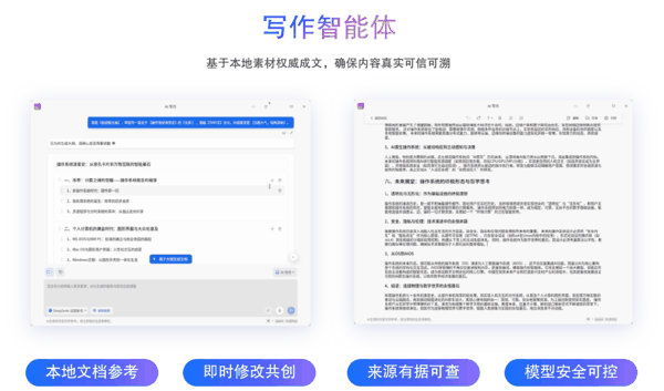 系统升级了 AI 架构 ,增加了智能体服务层(全局场景感知、运行沙箱环境、记忆与个性化),并构建了通用智能体能力框架,面向办公和生产力场景进行特化优化,提供伴随式 AI 助手。
