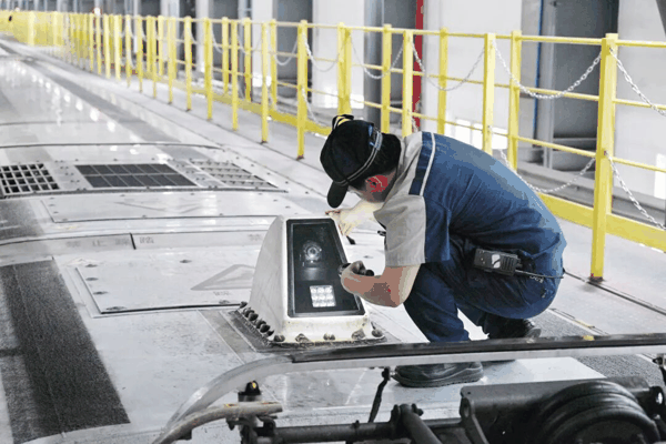 在动车“4S店”,动车组受电弓监控装置会定期进行全面检修保养,确保列车的每一趟旅程都安全可靠。