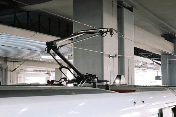 众所周知,动车组列车靠电力运行,安装在车顶的受电弓紧贴线路上方的接触网,从而持续获取电能。