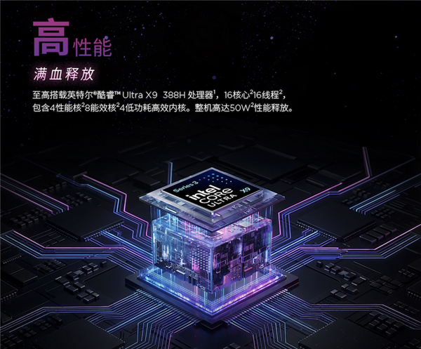 处理器方面,搭载英特尔酷睿Ultra 300系列处理器,16核心16线程;集成B390显卡,拥有12个Xe核心,最高频率2.5GHz,虽然只是核显,图形性能已经比肩RTX 3060独显。