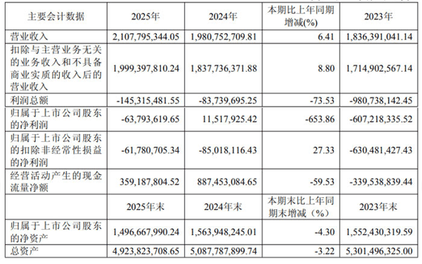 4 月 17 日,浙江东尼电子股份有限公司(股票简称:ST 东尼,股票代码:603595)正式披露 2025 年年度报告。报告显示,公司全年实现营业收入21.08 亿元,同比增长6.41%;归属于上市公司股东的净利润 -0.64 亿元,扣除非经常性损益后的净利润 -0.62 亿元,亏损幅度同比收窄27.33%,主营业务经营状况持续改善。