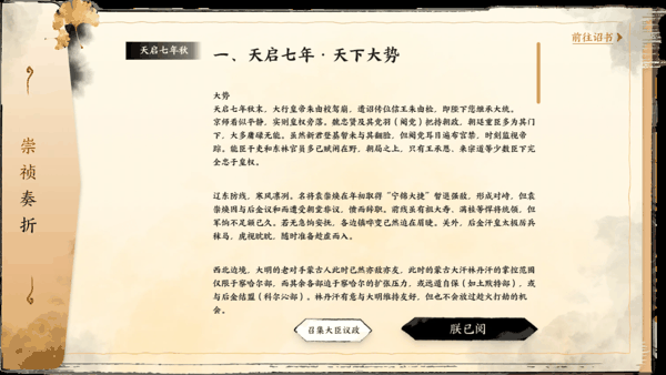但却是天启七年,一睁眼就是财政崩溃、党争失控、流民遍地、李自成将起、后金压境的崇祯。