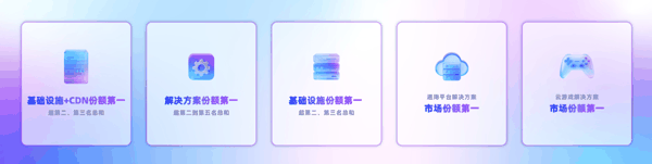 阿里云在这份报告里, 以绝对优势拿下了 5 个第一 :基础设施+CDN 份额第一、解决方案份额第一 、基础设施份额第一、 通用平台解决方案份额第一、云游戏解决方案份额第一。其中基础设施+CDN 份额、基础设施份额都超第二、第三名总和,解决方案份额更是以 42% 份额超第二到第五名总和。更难得的是,以上统计口径均为商业化市场数据,不计入内部用量。