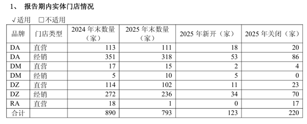 2025年,地素时尚新开123家实体门店,关闭220家实体门店。 截至2025年12月31日,该公司实体门店数量为793家,同比减少97家。