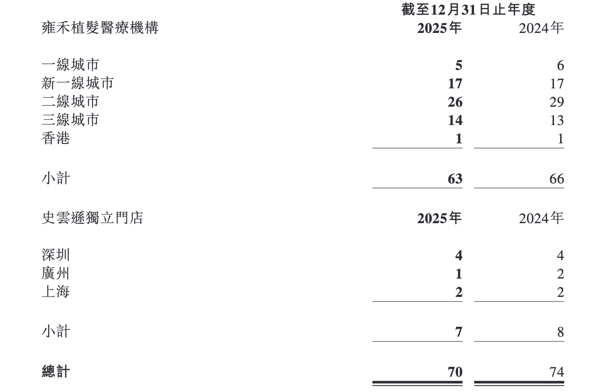 在组织层面,公司同步推进“瘦身”策略。门店数量明显收缩——植发医疗机构由上年的66家减少至63家,史云逊健发机构由8家缩减至7家,低效网点被加速出清。