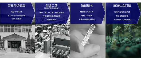 自 1942年手表制造业起家至今,爱普生始终秉承 "诚实与努力" “创新 和 挑战” 的精神薪火相传, 逐步淬炼出 精密加工/ MEMS、 材料/工艺技术 、 光学与 压力 传感等核心技术 ,并开发出许多创新性的产品和解决方案 。 如今,世界正经历百年未有之大变局,资源与能源约束加剧,全球劳动力结构深刻变化,地缘政治与环境风险交织, 如何最大限度地发挥资源、能源与人的价值,已成为关键所在。