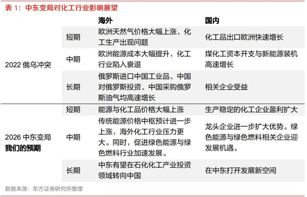 短期,我们认为化工行情主要以供给收缩加紧导致的产品价格超预期上涨为驱动。中期,我们认为行情来自于国内外化工竞争力进一步分化,以及 新能源 产业趋势的拉动。长期,我们认为中国企业可能在中东获得非常大的发展机遇。