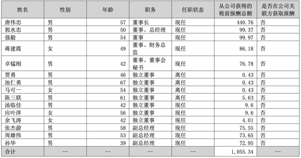 另需注意的是,公司董事长唐伟忠2025年从公司获得的税前报酬总额为440.76万元,而2024年其薪酬仅为120.68万元。而除董事长外,其余董事、高级管理人员薪酬均随公司业绩亏损相应下调。