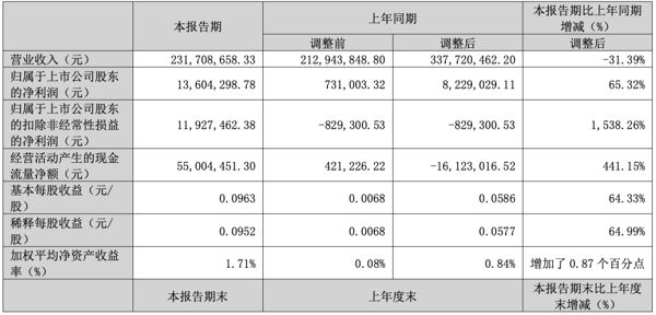 同日,大地海洋还公告,公司2026年第一季度实现营业收入2.32亿元,同比下降31.39%;归属于上市公司股东的净利润1360.43万元,同比增长65.32%;经营活动产生的现金流量净额5500.45万元,同比大幅增长441.15%。
