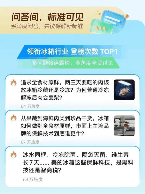 首先,在知乎上掀起一波讨论,提出一系列普通人选购或使用冰箱时真正关心的问题:两三天内要吃的肉,到底该冷藏还是冷冻?为什么普通冷冻解冻后肉会变柴?从果蔬到海鲜肉类再到珍品干货,冰箱到底怎么才能做到全食材原鲜?那些听上去很厉害的保鲜技术,到底是黑科技,还是智商税?