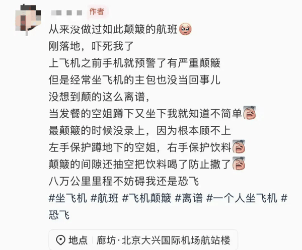 这不是段子,而是一位刚经历剧烈颠簸的乘客在社交平台上的真实记录。