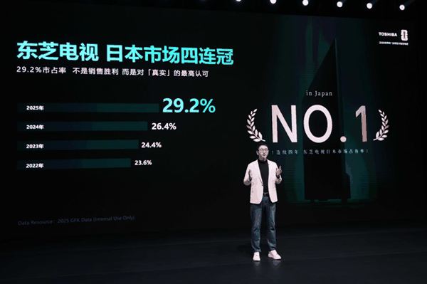 自1952年推出日本首台量产黑白电视起,东芝电视便将“还原真实视听”刻入品牌基因,70余年始终以技术创新为核心驱动力。2006年,东芝电视推出高端子品牌REGZA。二十年来,REGZA深耕画质、音效、工业设计与用户体验的全维度打磨,铸就了独树一帜的“专业音画”的品牌内核。这份长期主义的坚持,使得东芝REGZA连续四年蝉联日本电视市场销量冠军,2025年更是以29.2%的绝对优势领跑。在全球市场,东芝REGZA同样表现亮眼,在东盟、加拿大、亚太、印度等核心区域均实现高速增长,收获全球消费者广泛认可。