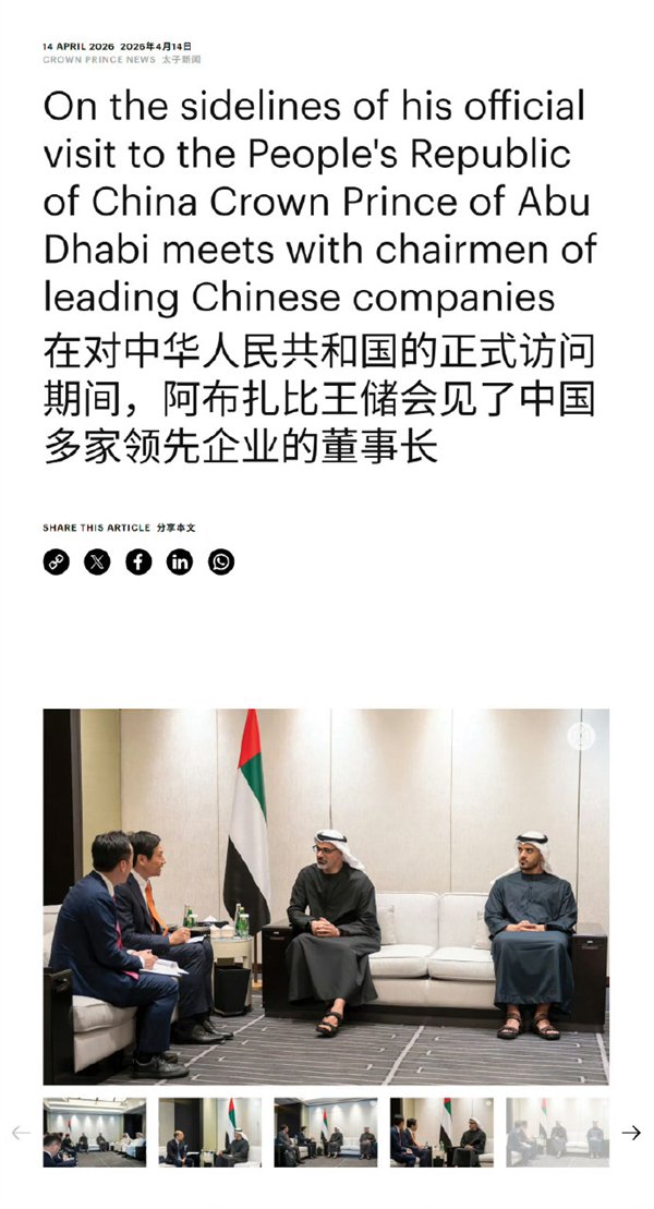 快科技4月15日消息,在对中国进行正式访问期间,阿联酋阿布扎比王储哈立德会见了中国多家领军企业董事长。