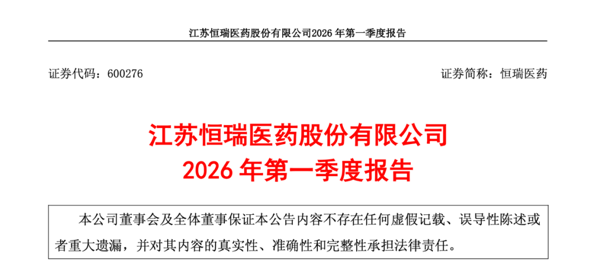 4月22日晚, 恒瑞医药 发布2026年一季度经营业绩。报告期内,公司实现营业收入81.41亿元,同比增长12.98%;归母净利润22.82亿元,同比增长21.78%。