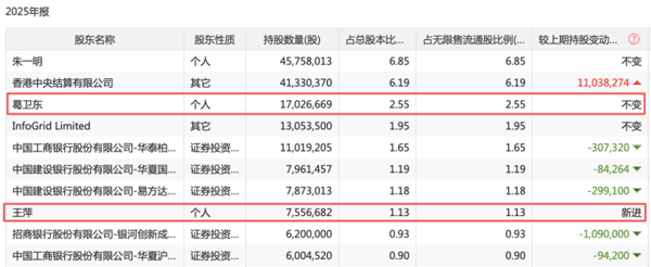 截至目前,葛卫东本人共现身4家上市公司前十大流通股东名单,分别是 兆易创新 、 曙光数创 、 会稽山 和 微电生理 ,其2025年年末的持股数量与2025年第三季度末相比保持不变。