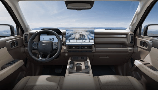 车内部分,新车基本延续标准版猛龙布局,主要变化集中在方向盘、车机界面和部分功能按键上。液晶仪表、抬头显示、悬浮式中控屏和怀挡都被保留下来,屏幕下方仍设置了实体按键,兼顾日常操作便利性。大尺寸天窗、可放倒的第二排座椅和平开式尾门,也都在强化装载和户外使用属性。