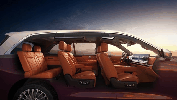 座舱采用双层环绕式布局,配备AR-HUD、液晶仪表和17.3英寸中控屏,车机搭载双 高通 8797芯片。车内重点仍在三排空间和舒适性配置,包括零重力座椅、后排娱乐屏、冷暖箱、音响系统以及车载制氧功能等。