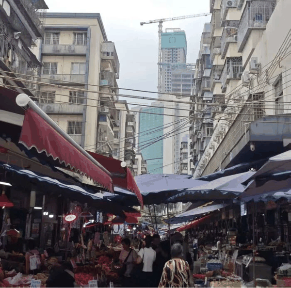本报记者走访过程中中发现,项目紧邻农贸市场,背面即为待拆旧村,旧改暂无明确开工时间表,未来长期施工带来的噪声、粉尘污染,将与一路之隔的繁华商圈形成明显的居住面貌割裂。