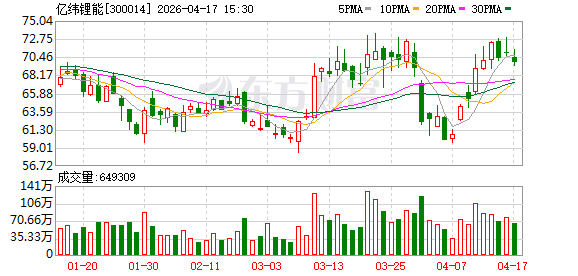 得益于需求增加,亿纬锂能2026年一季度业绩改善:预计归母净利润为13.76亿—14.87亿元,同比增长25%—35%,略 超市 场预期。