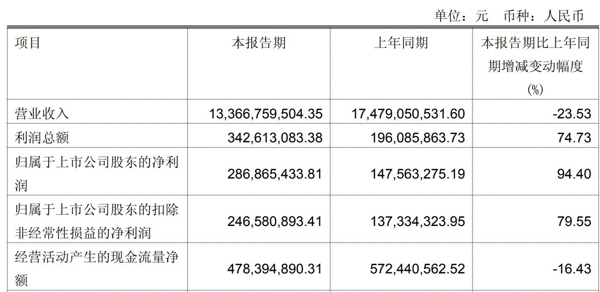 2026年第一季度,永辉超市实现营业收入约133.67亿元,同比依旧下降了23.53%;归母净利润约2.87亿元,同比增长94.40%。