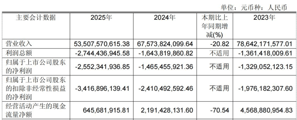 年报显示,2025年永辉超市实现营业收入约535.08亿元,较上年度下降20.82%;归母净利润亏损约25.52亿元,与上年同期相比增加亏损10.87亿元。