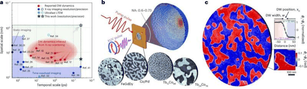 Mentink及其同事利用一种能够追踪到纳米和飞秒尺度过程的新型成像技术,研究了磁畴边界的行为。多个指向同一方向的自旋形成一个磁畴。