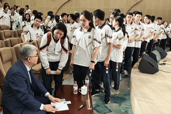 4月9日,周济院士走进广州外国语学校作科普讲座,并为该校学子签名留念。