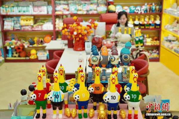 4月21日,“足球尖叫鸡”站上义乌商户周玲玲的店铺“C位”。董易鑫 摄