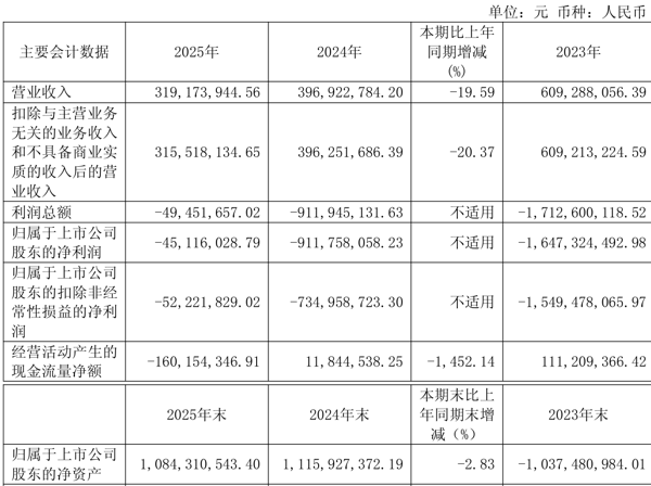 中证智能财讯 文投控股 (600715)4月18日披露2025年年度报告。2025年,公司实现营业总收入3.19亿元,同比下降19.59%;归母净利润亏损4511.6万元,上年同期亏损9.12亿元;扣非净利润亏损5222.18万元,上年同期亏损7.35亿元;经营活动产生的现金流量净额为-1.6亿元,上年同期为1184.45万元;报告期内, 文投控股 基本每股收益为-0.01元,加权平均净资产收益率为-4.10%。