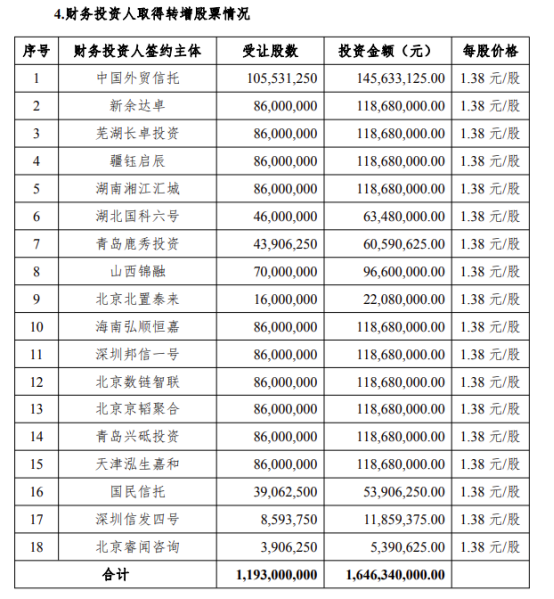 记者注意到,本次重整引入的18家财务投资人可谓阵容强大。