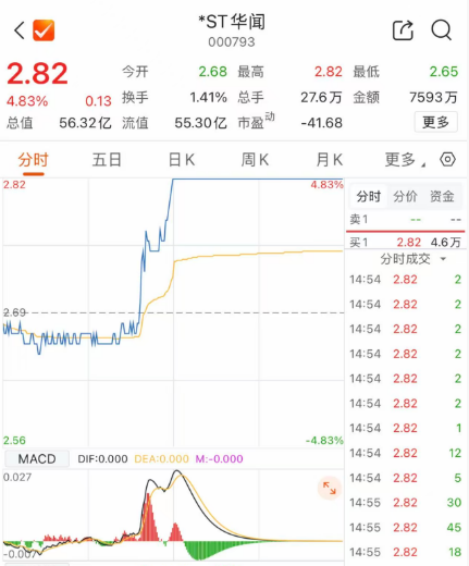 值得一提的是,4月9日午后, *ST华闻 股票快速冲上涨停,股票价格收于每股2.82元。