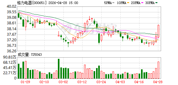 同日,格力2026年一季报出炉。公司今年Q1实现营业收入429.66亿元,同比增长3.52%;归母净利润60.82亿元,同比增长3.01%。