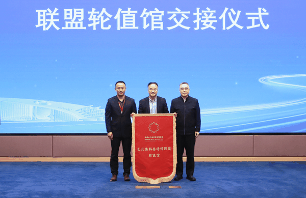 随后举行轮值馆交接仪式。胡建强与上海科技馆馆长倪闽景、联盟荣誉 主席 王小明共同交接轮值馆旗帜,标志着上海科技馆正式接任联盟轮值馆,开启区域科普协同发展新征程。