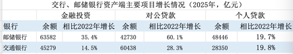 分析来看,主要因为邮储银行对公贷款、金融投资增长较快。 同花顺 ifind数据显示,2025年末邮储银行对公贷款余额4.3万亿元,相比2022年末增长了60%,这一增速是交通银行同期增速的两倍。