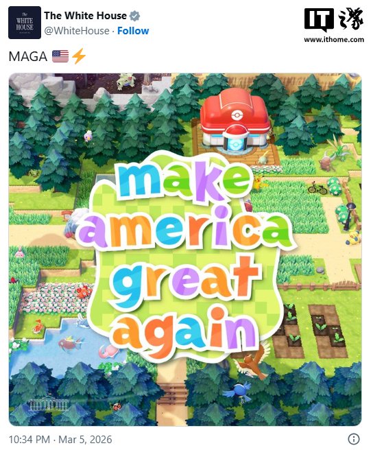 此外,白宫 X 账号近期还发布了一张将宝可梦游戏《Pokopia》的包装盒封面修改为“让美国再次伟大”字样的图片,这使得宝可梦公司再次否认与该宣传内容有任何关联。