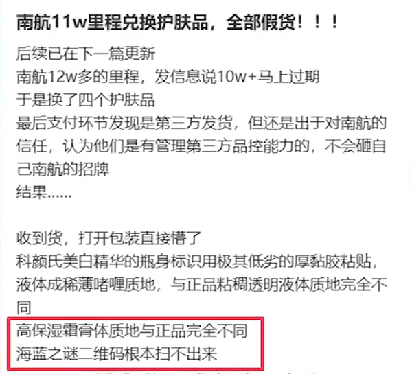 11万里程竟兑换到假护肤品!南航客服回应:兑换商品不保真