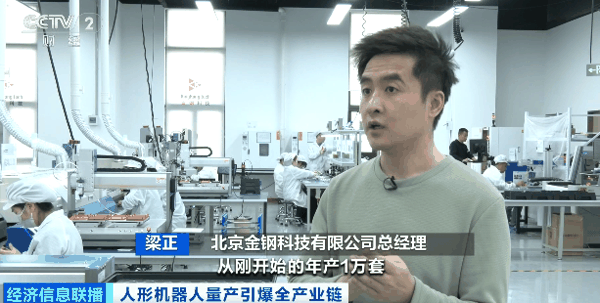 北京金钢科技有限公司总经理梁正:这个订单是1000套,我们需要在三周之内帮客户完成出货。同时海外市场我们也在积极扩展,像美国、韩国,还有欧洲都有很多 人形机器人 公司正在积极地联系我们。