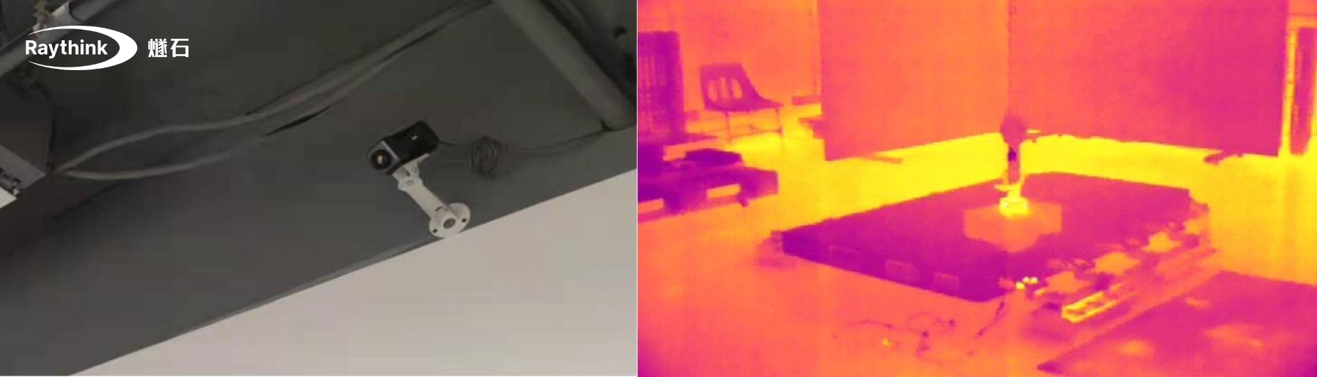 Raythink睿创燧石提供分层布控方案,除在关键位置部署在线测温热像仪外,在仓库墙壁或设施角落安装双光谱热成像可见光相机,对存储区域进行全景扫描,实现对货架、过道和开放区域的广域温度监控。 双光谱全天候监控