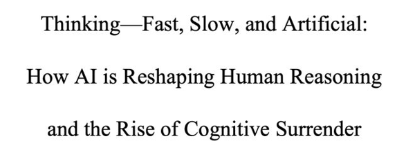 今年2月,宾夕法尼亚大学Wharton商学院的Steven Shaw和Gideon Nave发表了一篇论文,提出了一个让人不安的概念:「认知投降」(Cognitive Surrender)。