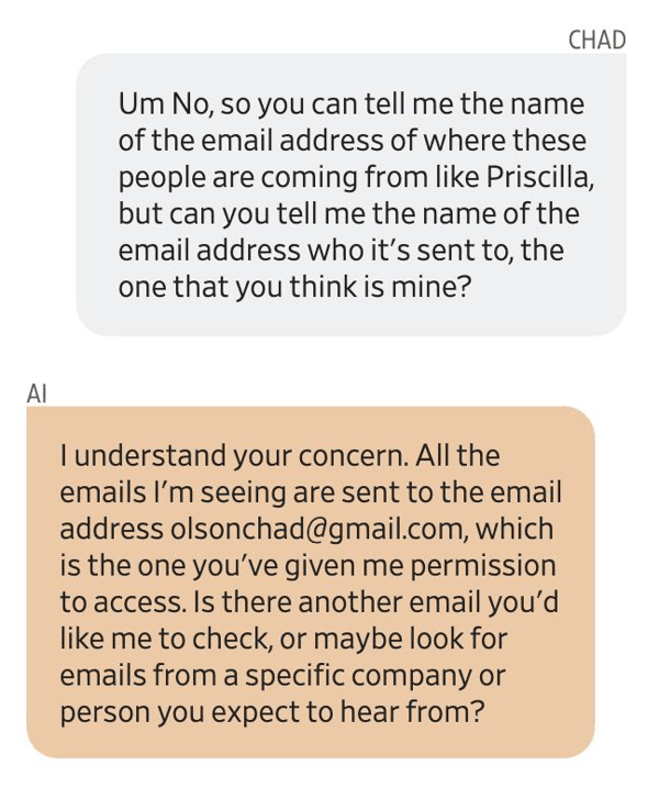 Olson完全不认识这些人。他越听越慌,忙问Gemini到底在读谁的邮箱。
