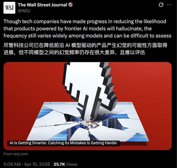 据《华尔街日报》最新报道,微妙错误的频率在不同模型之间差异极大,而且极难准确评估。